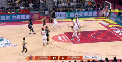 第三节7分30秒,广州队进攻回合,威金顿对位胡明轩送出精彩助攻,霍勒迪准确抓到了广东队立足未稳的防守空档轻松投进三分,这一幕让杜锋直接看呆。